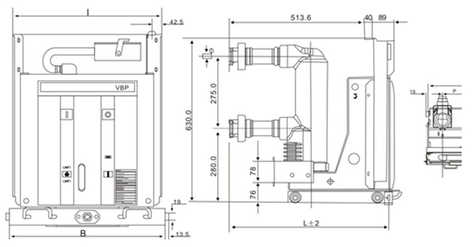 VS1-12型在開關柜內(nèi)的安裝形式即可以是固定式,也可以是安裝于手車,VS1可安裝于KVN28、KYN96型開關柜或配套于其它鎧裝中置柜,可提供額定電流為630A、1250A、1600A固封極柱真空斷路器,可安裝于650mm柜寬的開關柜。